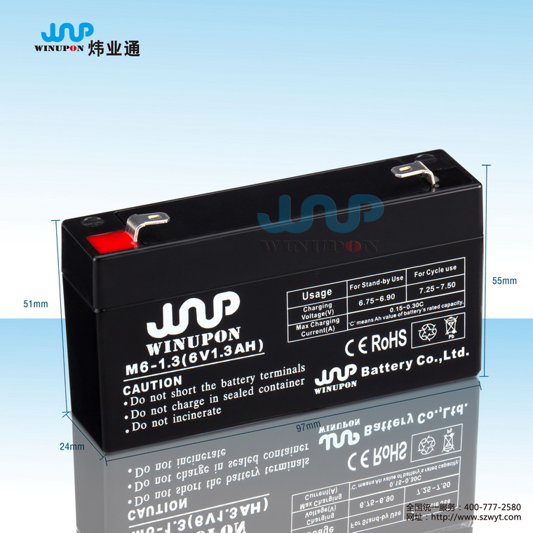 | 規(guī)格型號(hào) | 6V1.3AH | 外形尺寸(±2mm) | 約重0.30KG | |||